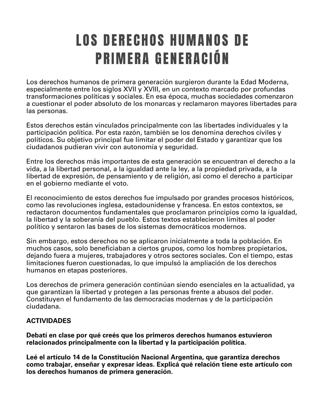 DERECHOS DE PRIMERA GENERACIÓN