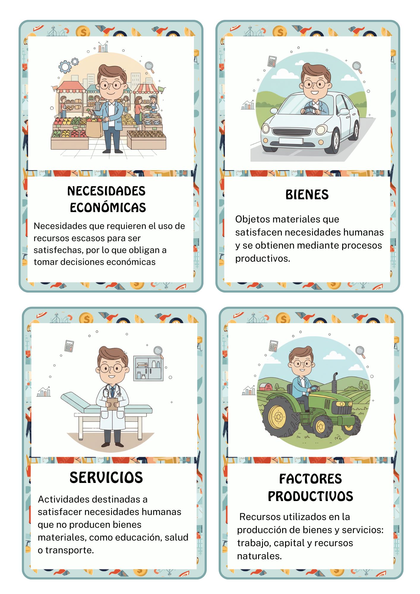 Estas Flashcards de Economía presentan los conceptos fundamentales de la materia con definiciones claras, lenguaje accesible e ilustraciones visuales que facilitan la comprensión y la memorización.