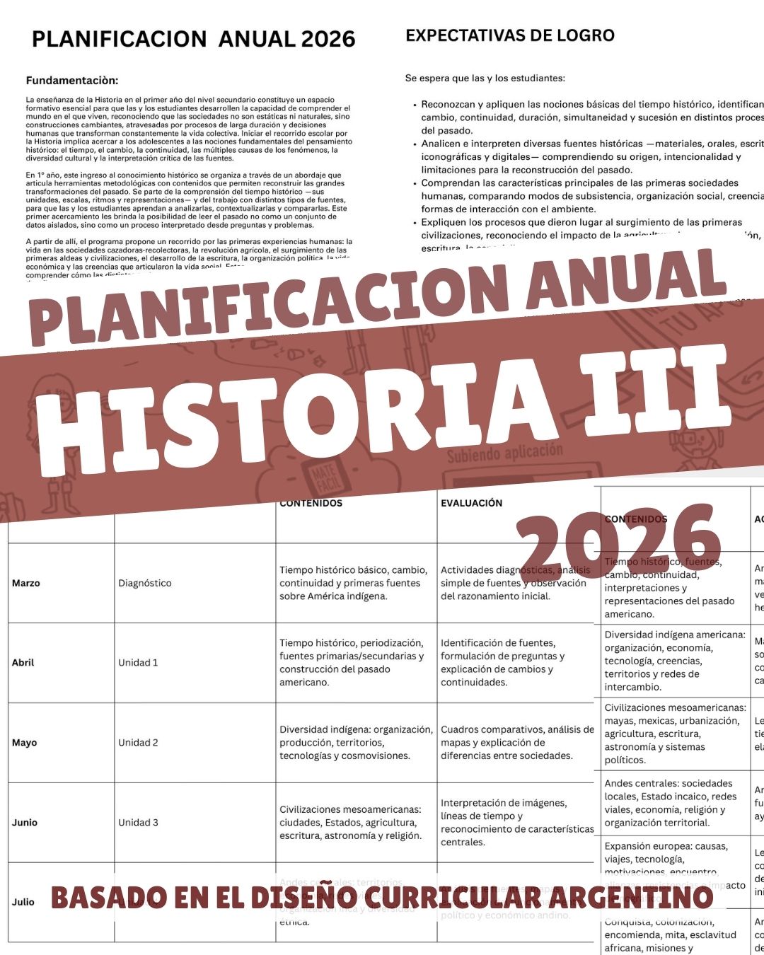 La Planificación Anual de Historia III 2026 es un recurso riguroso, actualizado y completamente organizado para acompañar el trabajo docente en el tercer año del nivel secundario. Presenta una fundamentación sólida, un desarrollo claro de unidades, criterios de evaluación y estrategias metodológicas alineadas al Diseño Curricular PBA.