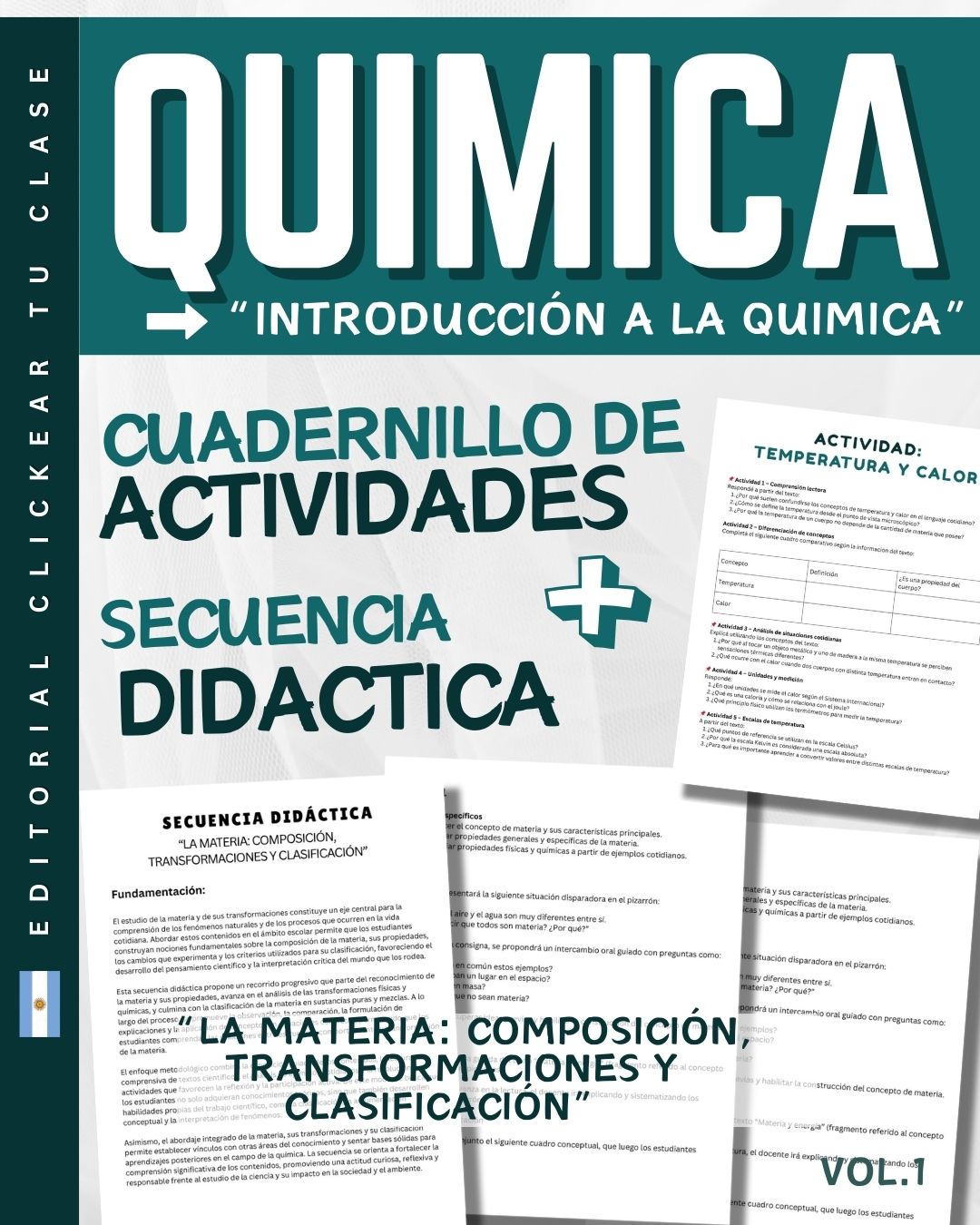 Este cuadernillo fue diseñado como un material integral de trabajo para el aula, ideal para acompañar los primeros contenidos de Química en el nivel secundario.