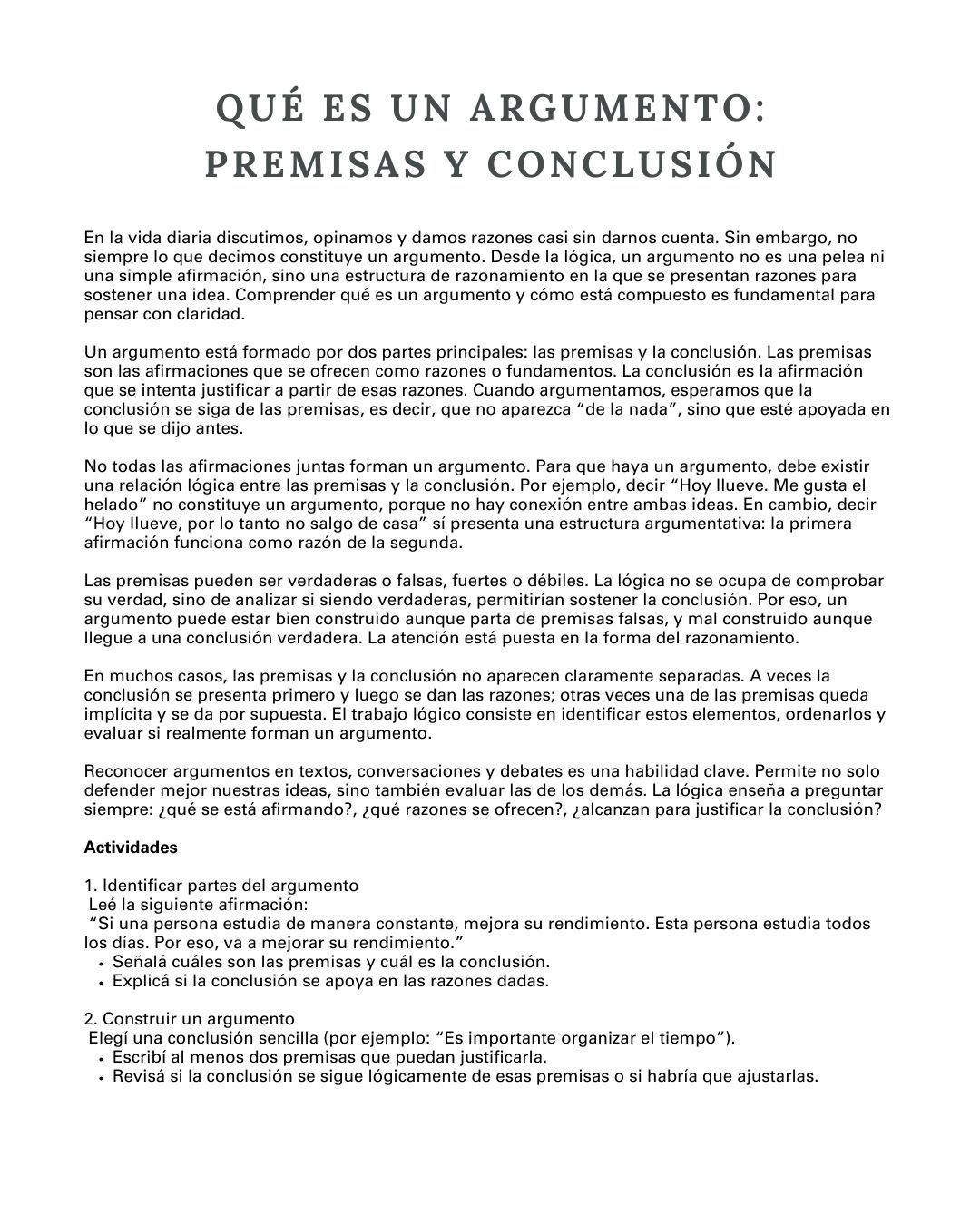 Qué es un argumento: premisas y conclusión